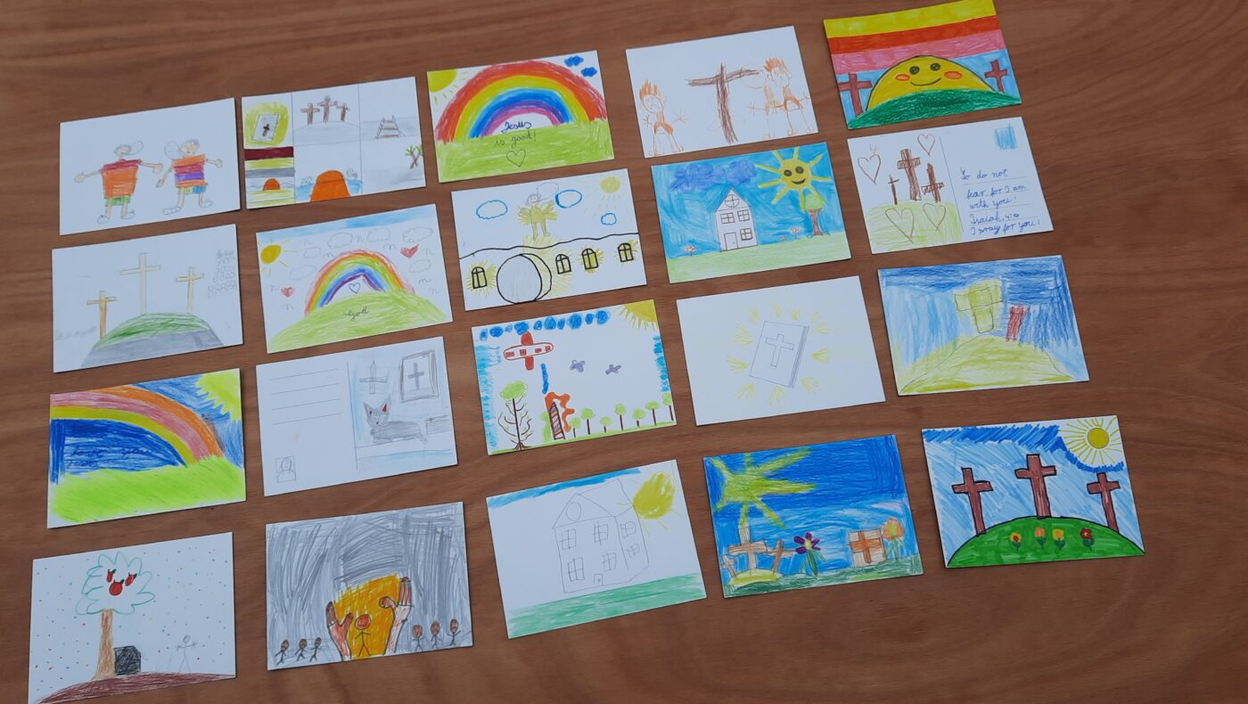 Neulich brauchte Frau Voß unbedingt unsere Hilfe. Sie wollte an taubstumme Kinder, die Christen sind und verfolgt werden, Ermutigungskarten schreiben. Auf einmal dachte sie: „Warum soll ich das alleine machen? Ich habe doch 21 tolle Schreiber!“, und somit haben wir eine Ermutigungsaktion gestartet. Jeder hat eine Karte mit einem leuchtenden hoffnungsmachenden Bild und einem mutmachenden Bibelvers gestaltet. Frau Voß hat die Karten dann zu einer Freundin gebracht, die bei Open Doors arbeitet. Von dort sind sie zu den Kindern in Zentralasien geschickt worden. Wo das ist, darfst du selber mal rausfinden. Bei uns hat ein Junge das nachgeschaut, weil es ihn interessierte. So lernen wir uns in der Welt auszukennen.